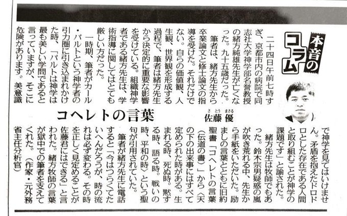 佐藤優【本音のコラム】 コレヘトの言葉 東京新聞2016.1.29 Thanks to 二子玉川情報センター pic.twitter.com/CuuUPMqa3e